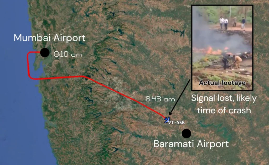 सुबह ठीक 8:43 बजे विमान का सिग्नल पूरी तरह से शांत (Silent) हो गया। विशेषज्ञों का मानना है कि यही वह समय था जब विमान दुर्घटना का शिकार हुआ। जिस स्थान पर सिग्नल खत्म हुए, वह बारामती एयरपोर्ट से मात्र 20 किलोमीटर दूर है। यानी लैंडिंग की तैयारी के दौरान ही यह बड़ा हादसा हो गया।