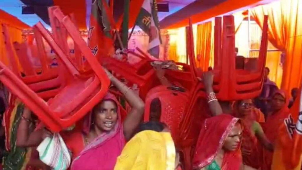 महिलाएं कुर्सियां उठाकर ले गईं। Bihar Election 2025