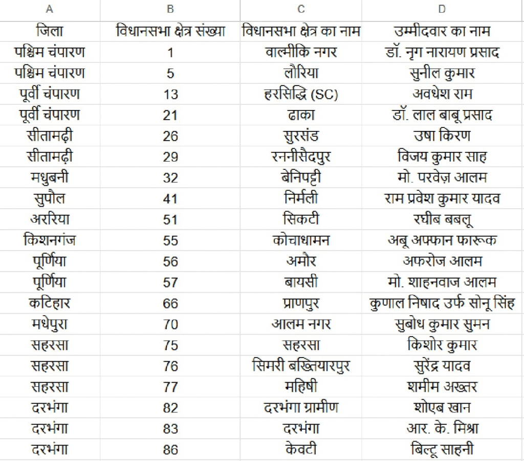 Jan Suraaj Candidates First List