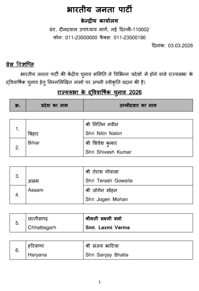 BJP Rajya Sabha Candidates : साल 2026 में होने वाले राज्यसभा के द्विवार्षिक चुनावों के लिए भारतीय जनता पार्टी की केंद्रीय चुनाव समिति ने नए उम्मीदवारों की लिस्ट जारी कर दी है। भाजपा ने 9 उम्मीदवारों के नामों की शोषण की है। इनमें नितिन बिहार से नवीन का नाम भी शामिल है। इस सूची में भाजपा ने एक बार फिर अपने ‘बड़े वोट बैंक’ यानी सवर्ण वर्ग पर फोकस किया है। जबकि ओबीसी, जो देश की सबसे बड़ी संख्या में हैं, उन्हें दूसरे नंबर पर ही रखा है। ऐसे में भाजपा के भीतर ब्राह्मण और ओबीसी नेताओं के बीच खटपट होने की संभावना है।
