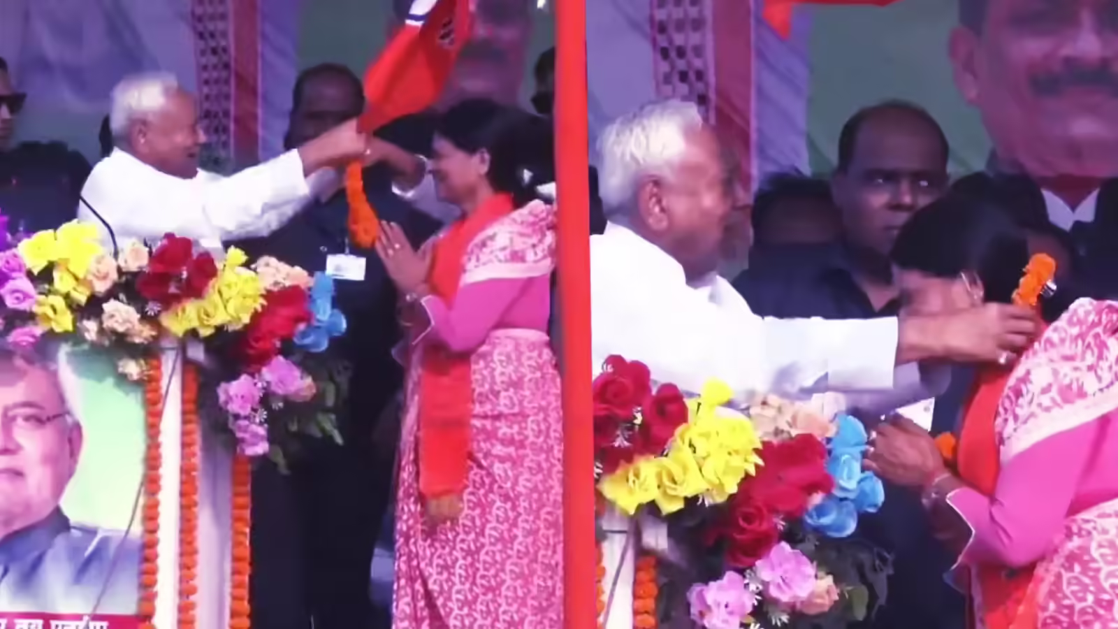 मुजफ्फरपुर जिले के मीनापुर हाई स्कूल में NDA कैंडिडेट्स के सपोर्ट में एक रैली को संबोधित करते हुए, घटना का एक वीडियो सोशल मीडिया पर तेजी से वायरल हो रहा है। रैली के दौरान, मुख्यमंत्री नीतीश कुमार ने बीजेपी कैंडिडेट रमा निषाद को स्टेज पर बुलाया और उन्हें माला पहनाई, जो महिलाओं के सम्मान की परंपरा के खिलाफ है। महिलाओं को अक्सर माला पहनाकर सम्मान दिया जाता है। असल में, हिंदू परंपरा में, आमतौर पर यह रिवाज नहीं है कि कोई महिला अपने पति के अलावा किसी और पुरुष को माला पहनाए।