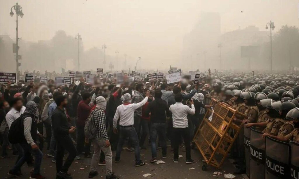 प्रदर्शनकारी दिल्ली कोऑर्डिनेशन कमिटी फॉर क्लीन एयर के बैनर तले इकट्ठा हुए थे। प्रदर्शनकारियों का कहना है, “सरकार सिर्फ सतही उपाय कर रही है – जैसे पानी छिड़कना, क्लाउड सीडिंग या AQI स्टेशनों के आसपास स्प्रे करना। असली समस्या पर ध्यान नहीं।” प्रदर्शन के दौरान लोग सड़क पर उतर आए, एम्बुलेंस और मेडिकल स्टाफ को रास्ता देने से इनकार कर दिया। जिसके बाद पुलिस ने बैरिकेड लगाए थे, लेकिन प्रदर्शनकारियों ने उन्हें तोड़ दिया और धरना दे दिया। हटाने की कोशिश में मिर्ची स्प्रे का इस्तेमाल हुआ। कुछ रिपोर्ट्स में कहा गया है कि प्रदर्शनकारियों के पास हाल ही में मारे गए माओवादी कमांडर मदवी हिड़मा के पोस्टर भी थे, जिससे मामला और जटिल हो गया। इसके साथ ही, प्रदर्शनकारियों ने खतरनाक नारेबाजी की, जिनमें नक्सली नेता हिडमा के समर्थन में नारे लगाए गए।
