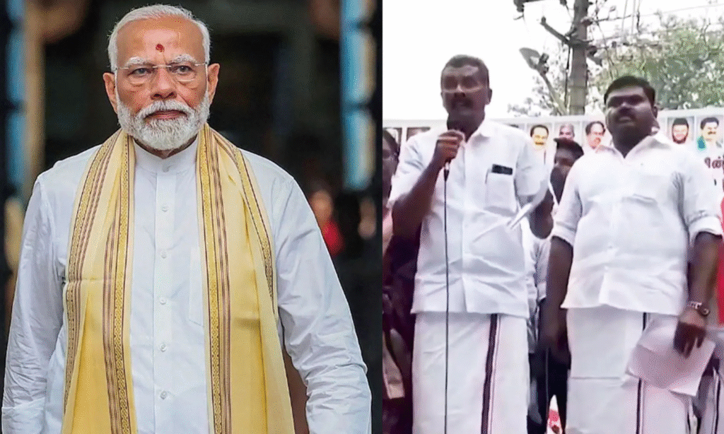PM Modi Threat : भारतीय प्रधानमंत्री नरेंद्र मोदी बुधवार को आंध्र प्रदेश और तमिलनाडु के दौरे पर जाने वाले हैं। हालाँकि, इस दौरे से पहले, तमिलनाडु की सत्तारूढ़ डीएमके के एक नेता ने पीएम मोदी को जान से मारने की धमकी दी है। डीएमके नेता द्वारा पीएम मोदी को जान से मारने की धमकी का एक वीडियो सामने आया है जिससे हंगामा मच गया है। भाजपा के प्रदेश अध्यक्ष नयनार नागेंद्रन ने डीएमके नेता का यह वीडियो सोशल मीडिया पर शेयर किया और लिखा कि प्रधानमंत्री को जान से मारने की धमकी देने वाले डीएमके नेता को तुरंत गिरफ्तार किया जाना चाहिए।