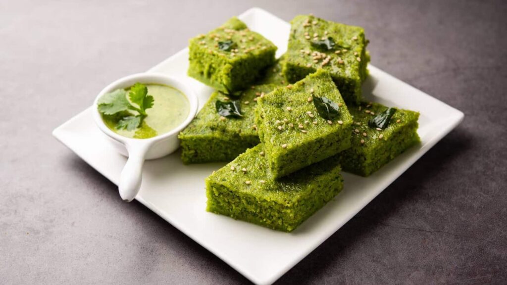 Green Dhokla Recipe : पालक-मटर का हेल्दी-टेस्टी ग्रीन ढोकला-रंगीन ढोकला रेसिपी की इस विशेष श्रृंखला में आज हम आपको रूबरू करा रहे हैं पालक के मटर ढोकला, जिसे ग्रीन ढोकला रेसिपी (Green Dhokla Recipe) के नाम से भी जाना जाता है। यह ढोकला न सिर्फ देखने में आकर्षक हरे रंग का होता है, बल्कि स्वाद और सेहत-दोनों का बेहतरीन मेल है। पालक आयरन और फाइबर से भरपूर होता है, जबकि बेसन प्रोटीन का अच्छा स्रोत है। दही और हल्के मसालों के साथ तैयार यह ढोकला बच्चों के टिफिन, व्रत के बाद हल्के भोजन या शाम के नाश्ते के लिए एक आदर्श विकल्प बन जाता है। कम तेल में बनने वाली यह रेसिपी हेल्थ कॉन्शियस लोगों के लिए भी बेहद फायदेमंद है। पालक के मटर ढोकला रेसिपी जानिए, जो हरा-भरा, स्वादिष्ट और पौष्टिक है। यह Green Dhokla Recipe बच्चों से लेकर बड़ों तक सभी के लिए एक हेल्दी नाश्ता विकल्प है।
