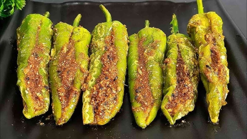 स्टेप 1-हरी मिर्च को अच्छी तरह धोकर बीच में हल्का चीरा लगा लें ताकि मसाला अंदर तक भर सके।