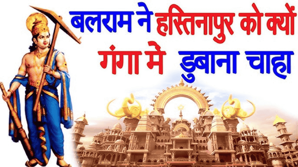 भगवान बलराम के हल और उनकी शक्ति की जो कथाऐ मिलती है। उनमें हस्तीनापुर को लेकर बताया जाता है कि कौरवों के बीच एक बार बलराम का खेल हुआ और बलराम उसमें जीत गए, लेकिन कौरव हारने के लिए तैयार नही थें। जिससे बलराम को गुस्सा आ गया और उन्होने अपने हल से पूरी हस्तीनापुर को खीच कर गंगा नदी में डूबने लगे। इस दौरान आकाशवाणी हुई की जीत बलराम की हुई है। जिस पर बलराम ने अपना हल रख दिया और तभी से उन्हे हलधर कहा जाने लगा।