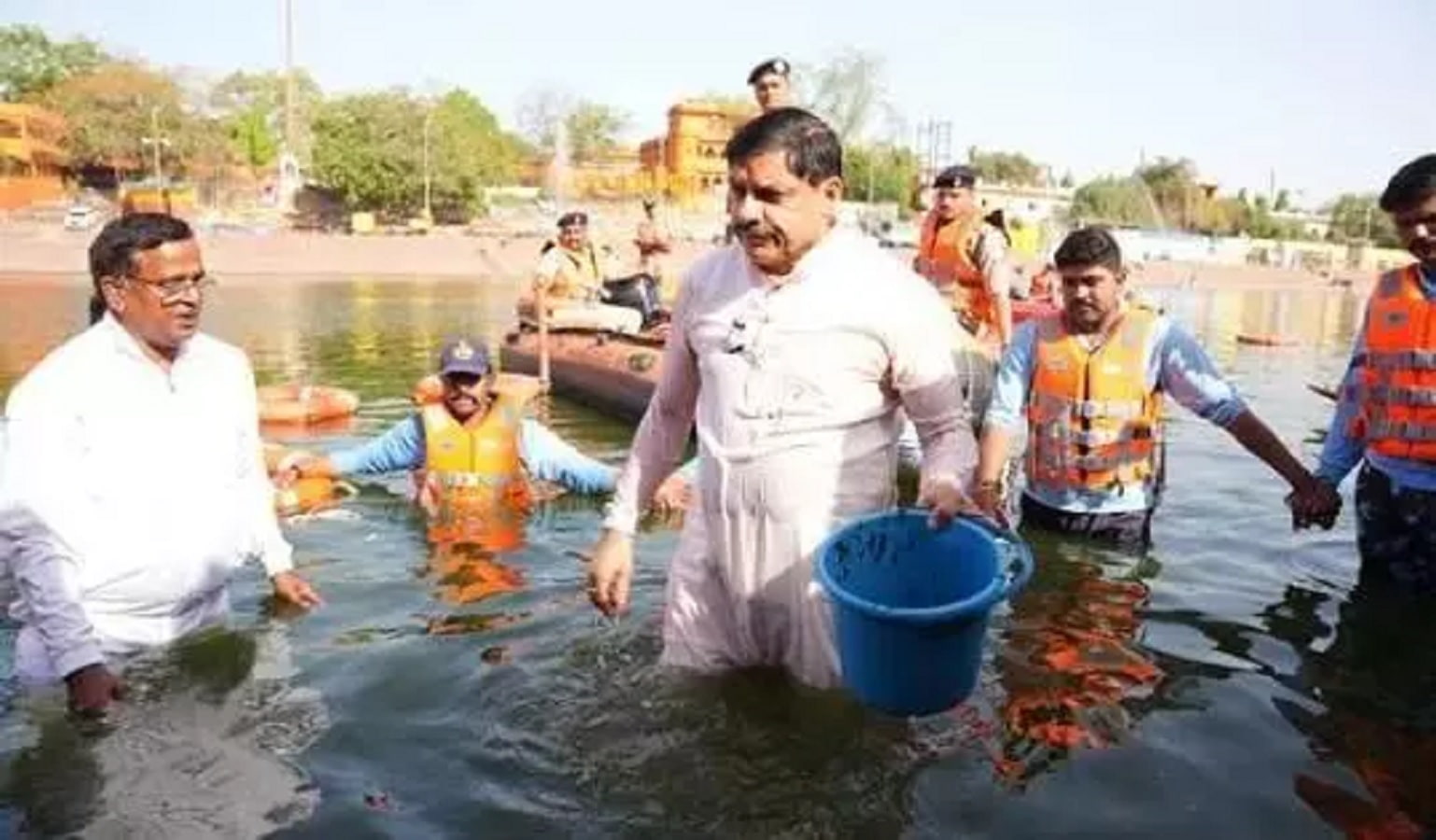 बैठक में वीडियो कान्फ्रेंसिंग से शामिल मुख्यमंत्री डॉ. यादव ने कहा कि यशस्वि प्रधानमंत्री नरेन्द्र मोदी जी के जल संरक्षण के आहवान पर मध्यप्रदेश के शहरी और ग्रामीण क्षेत्र में लगातार जल संरक्षण के प्रयास किये जा रहे हैं। गत वर्ष खण्डवा जिले में एक लाख 29 हजार जल संरचनाओं का निर्माण करके देश मे प्रथम स्थान प्राप्त किया। मध्यप्रदेश में पिछले 2 वर्षों में जल संरक्षण के लिए 2 लाख 79 हजार जल संरक्षण का निर्माण किया गया है। मध्यप्रदेश 250 से अधिक नदियों का मायका है। नदियों के उद्गम स्थलों की साफ-सफाई तथा वृक्षारोपण का अभियान शुरू किया जा रहा है।