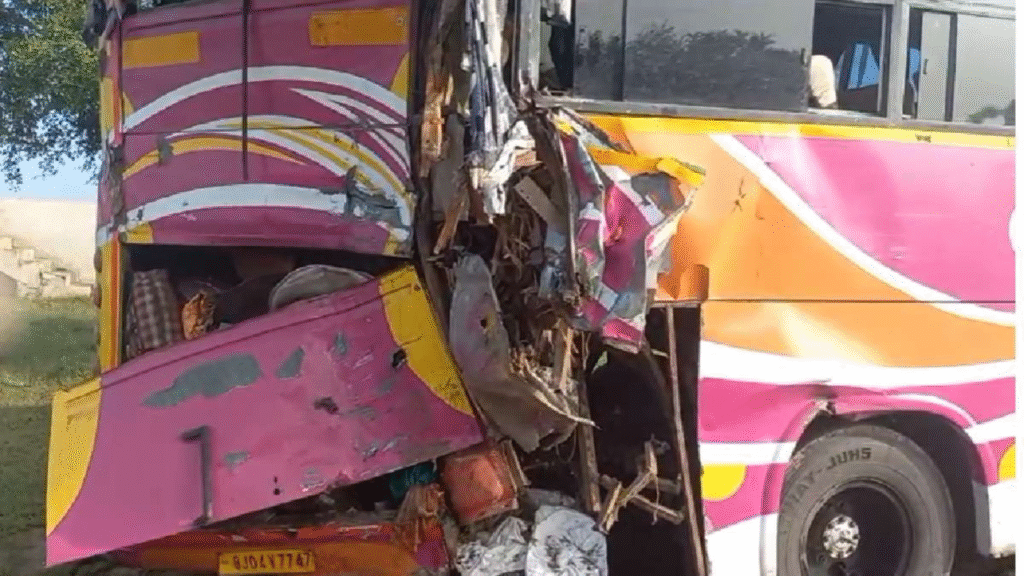 गुरुवार सुबह भरतपुर ज़िले में आगरा-जयपुर नेशनल हाईवे पर एक भयानक सड़क हादसा हुआ। कासगंज से जयपुर जा रही एक स्लीपर बस सेवर थाना क्षेत्र में लुधवाई पुल के पास पीछे से एक ट्रेलर से टकरा गई। हादसा इतना भयानक था कि बस का अगला हिस्सा पूरी तरह से बर्बाद हो गया। इस दुखद हादसे में चार लोगों की मौके पर ही मौत हो गई, जबकि पांच यात्री गंभीर रूप से घायल हो गए।