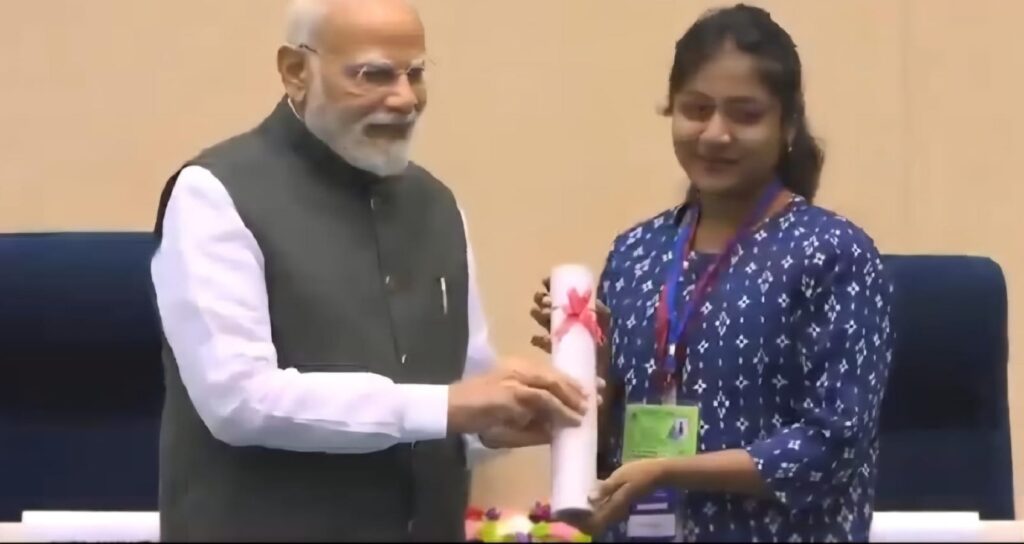 एमपी की बेटी त्रिसा पीएम मोदी के हाथों सम्मानित, इलेक्ट्रीशियन ट्रेड में हासिल की देश में फस्ट रैंक