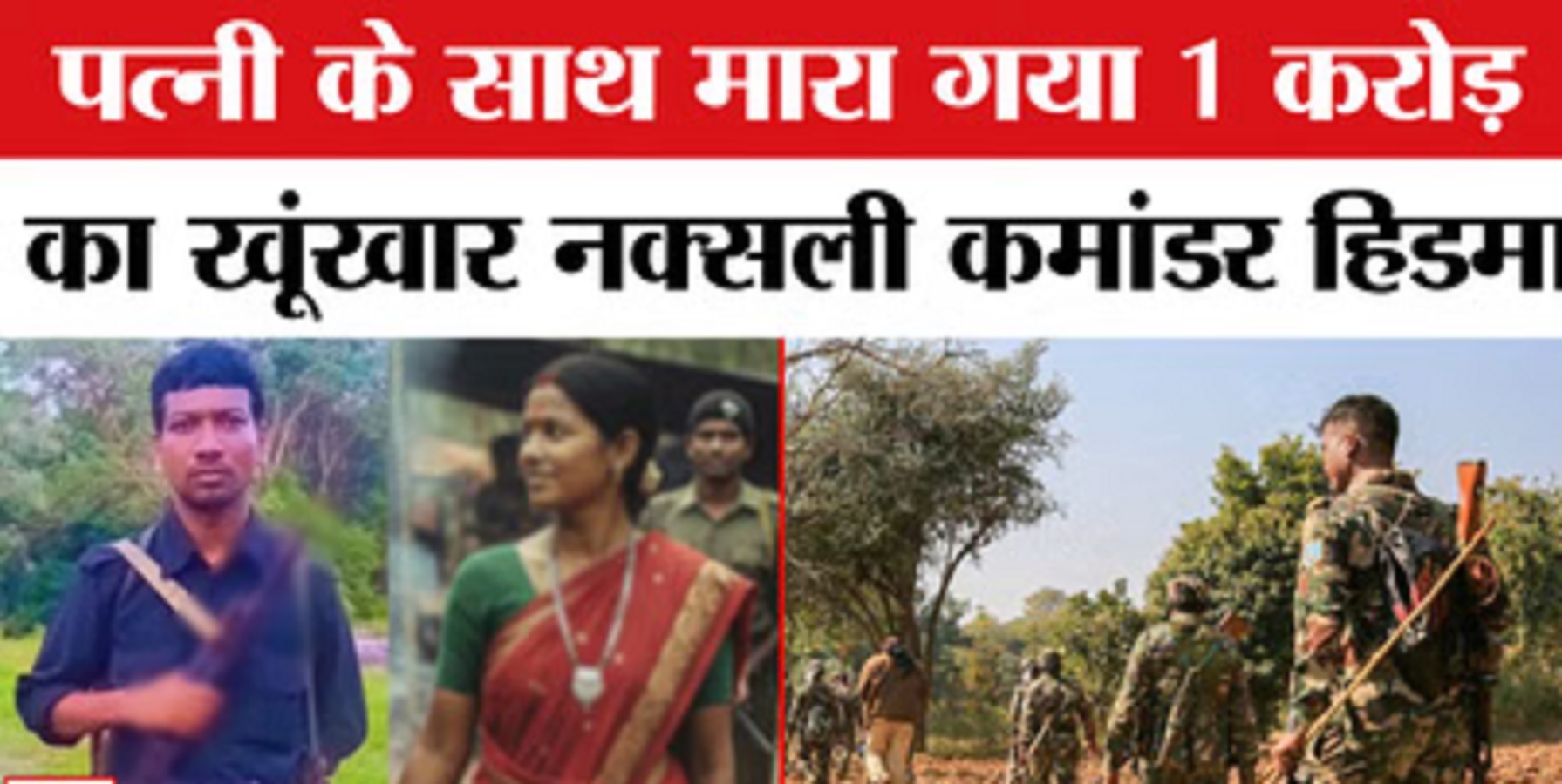छग। छत्तीसगढ के जगदलपुर में सुरक्षा बलों ने बड़ा एनकाउंटर करते हुए 1 करोड़ के ईनामी नक्सली कमांडर माड़वी हिड़मा को मार गिराया है। इस एनकांउटर में हिड़मा की पत्नी राजे उर्फ रजक्का समेत 4 नक्सली मारे गए है। यह कार्रवाई छत्तीसगढ़-आंध्र प्रदेश बॉर्डर पर मारेडुमिली जंगल में मंगलवार सुबह हुई है। इधर छत्तीसगढ़ के सुकमा जिले के एर्राबोर थाना क्षेत्र में भी एक दूसरी मुठभेड़ हुई है, इसमें नक्सलियों के घायल होने की खबर है। दोनों जगहों पर सुरक्षाबलों का सर्च ऑपरेशन जारी है।