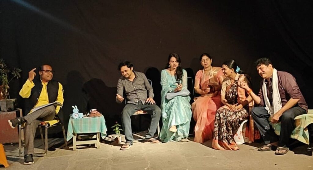 मंच पर राजेश शुक्ल “राजन” ने “परमानंद व्यथित” के रूप में उस आम आदमी की बेबसी को पूरी शिद्दत से जिया, जो अभावों में भी “प्रभाव” दिखाने के ढोंग में खुद को खो देता है। सत्येन्द्र सेंगर (विनय) और ज्योति मिश्रा (सुरभि) के बीच के संवाद उस दाम्पत्य की कहानी कहते दिखे, जहां प्रेम अक्सर बिजली के बिल और राशन की चिंताओं की राख के नीचे दबा रह जाता है।पड़ोसी मिस्टर वर्मा (रमज़ान खान) और वर्माइन जी (प्रभा मिश्रा) ने जहां सहज हास्य का रंग भरा, वहीं यह भी दिखाया कि कैसे सामाजिक हस्तक्षेप हमारी व्यक्तिगत सीमाओं का अतिक्रमण करता है। कवयित्री राधिका के रूप में अनुराधा पांडेय ने कथा को एक साहित्यिक गरिमा प्रदान की, जबकि आशीष मिश्रा का “खुन्नस खाया कवि” समाज के उस आक्रोश का चेहरा बना, जो अपनी उपेक्षा से आहत है।