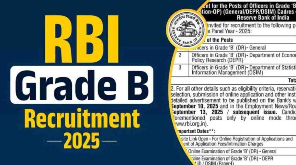 RBI Grade B Recruitment 2025 : भारतीय रिज़र्व बैंक (RBI) में ग्रेड-बी पदों के लिए आवेदन प्रक्रिया जारी है। हालाँकि, इन पदों के लिए चल रही आवेदन प्रक्रिया जल्द ही बंद हो जाएगी। इच्छुक और योग्य उम्मीदवार जिन्होंने अभी तक आवेदन नहीं किया है, वे आधिकारिक वेबसाइट पर जाकर जल्द से जल्द आवेदन करें। इस भर्ती अभियान में 100 से ज़्यादा पदों पर भर्ती की जाएगी। उम्मीदवार नीचे दिए गए चरणों का पालन करके अपना आवेदन पत्र भर सकते हैं।