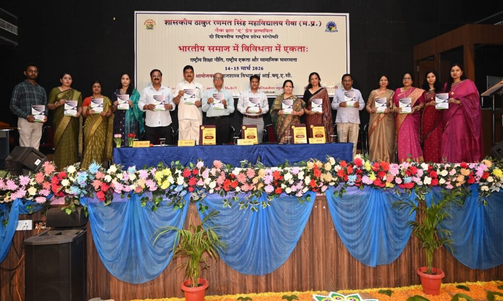 रीवा। शासकीय ठाकुर रणमत सिंह महाविद्यालय, रीवा के समाजशास्त्र विभाग द्वारा दो दिवसीय राष्ट्रीय शोध संगोष्ठी का आयोजन किया गया। जिसमें भारतीय समाज में विविधता में एकता- राष्ट्रीय शिक्षा नीति, राष्ट्रीय एकता एवं सामाजिक समरसता विषय पर वक्ताओं ने खुलकर बात रखी। कार्यक्रम का उद्देश्य भारतीय समाज की बहुलतावादी संरचना, शिक्षा नीति की भूमिका तथा सामाजिक समरसता के आयामों पर विद्वानों के बीच गंभीर अकादमिक विमर्श को प्रोत्साहित करना था।