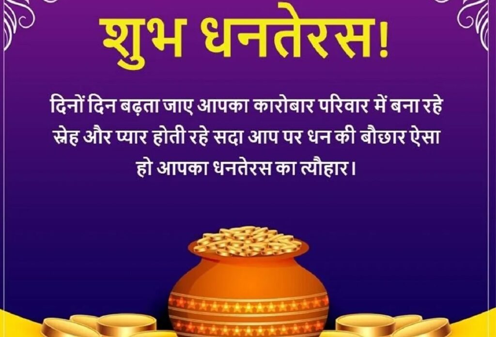 धनतेरस का शुभ दिन आया, खुशियों का सागर साथ लाया, हर मन में हो विश्वास का दीपक, जीवन में छा जाए उजाला अपार।