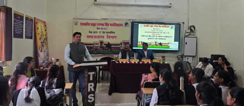 Special Lecture Program : समानता-सशक्तिकरण की ओर एक सशक्त पहल,TRS रीवा में विशेष संवाद-राष्ट्रीय महिला दिवस के अवसर पर समाजशास्त्र विभाग, टी.आर.एस. कॉलेज, रीवा में “समाजशास्त्रीय दृष्टि से महिला सशक्तिकरण,चुनौतियां और संभावनाएं” विषय पर एक विशेष संवाद कार्यक्रम एवं व्याख्यान का भव्य आयोजन किया गया। इस कार्यक्रम का मुख्य उद्देश्य विद्यार्थियों और शैक्षणिक समुदाय को महिला सशक्तिकरण, सामाजिक समानता और न्याय के महत्व से अवगत कराना तथा समाज में सकारात्मक परिवर्तन के लिए प्रेरित करना था। कार्यक्रम का आयोजन महाविद्यालय की प्राचार्य डॉ. अर्पिता अवस्थी के मार्गदर्शन में,समाजशास्त्र विभाग के विभागाध्यक्ष प्रो.अखिलेश शुक्ल के निर्देशन में तथा डॉ. महानंद द्विवेदी के संयोजकत्व में सफलतापूर्वक संपन्न हुआ। इस अवसर पर महाविद्यालय का वातावरण ज्ञान, संवेदना और सामाजिक चेतना से परिपूर्ण दिखाई दिया। टीआरएस कॉलेज रीवा के समाजशास्त्र विभाग में राष्ट्रीय महिला दिवस 2026 के अवसर पर महिला सशक्तिकरण पर विशेष संवाद और व्याख्यान का आयोजन हुआ। जानिए कार्यक्रम की प्रमुख बातें, वक्ताओं के विचार और निष्कर्ष।