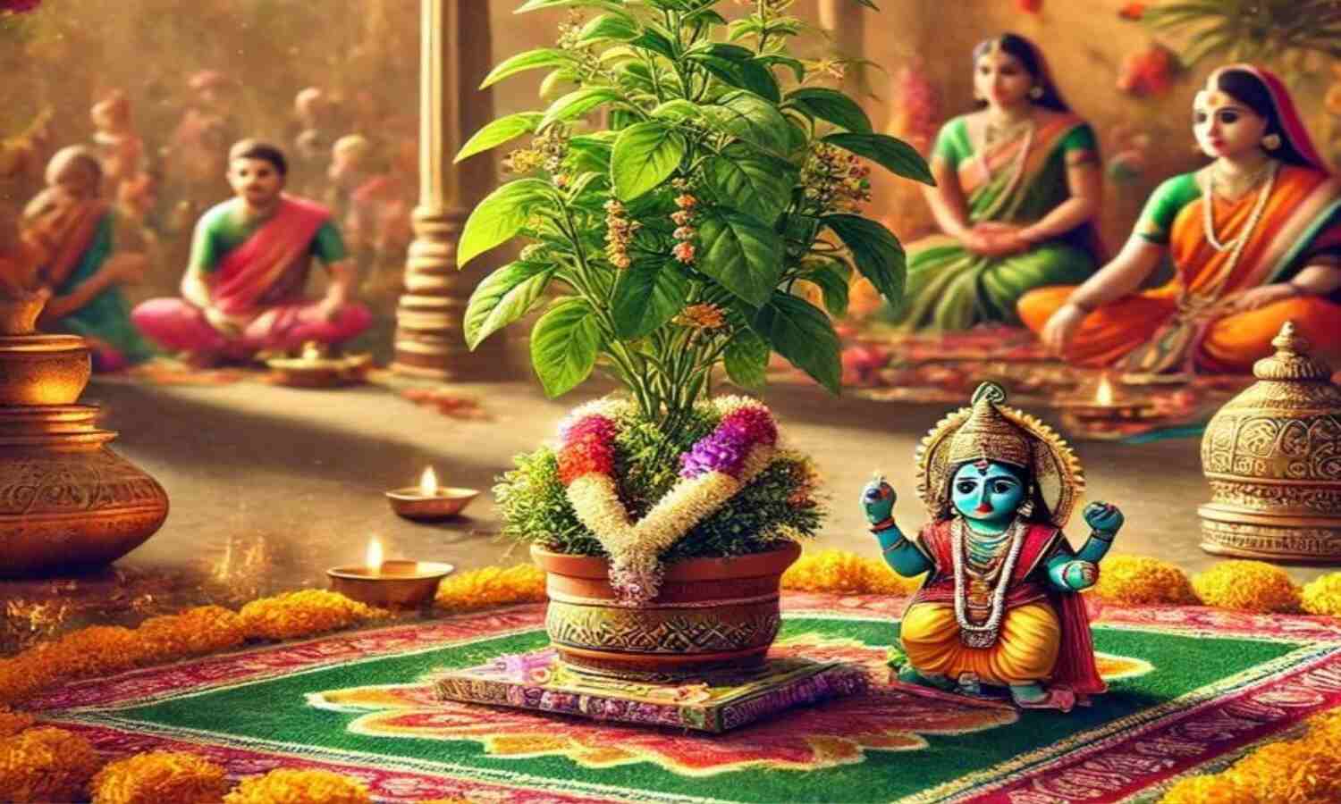 माना जाता है कि मां तुलसी देवी लक्ष्मी का रूप हैं, जिन्होंने वृंदावन में जन्म लिया था। इस दिन तुलसी का पौधा दुल्हन के रूप में माना जाता है और भगवान विष्णु को शालिग्राम के रूप में दूल्हा माना जाता है। महिलाएं भजन और शादी के गीत गाती हैं, साथ ही मंगलाष्टक मंत्र का जप किया जाता है।