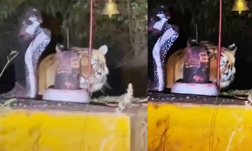 कटनी। मध्यप्रदेश के कटनी जिले के ढीमरखेड़ा तहसील क्षेत्र से शिवलिंग के पास वनराज की ऐसी एक्टिविंटी देखी गई कि हर कोई देख कर दंग है, हो भी क्यों न, यहां वनराज ऐसे नजर आ रहे है जैसे वे शिवलिंग में सिर रखकर भगवान भोले नाथ को बरांबर प्रणाम कर रहे हो। टाइगर का शिवलिंग के साथ की जा रही अठखेलियों का ग्रामीणों ने वीडियों बना लिया और यह वीडियो अब सोशल मीडिया में तेजी के साथ वायरल हो रहा है।